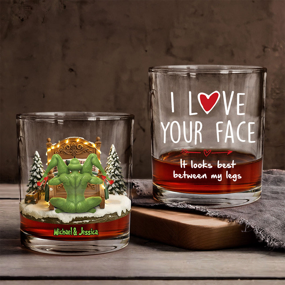 Noël en couple - Cadeau Grinchmas - Verre à whisky personnalisé avec étole de Noël