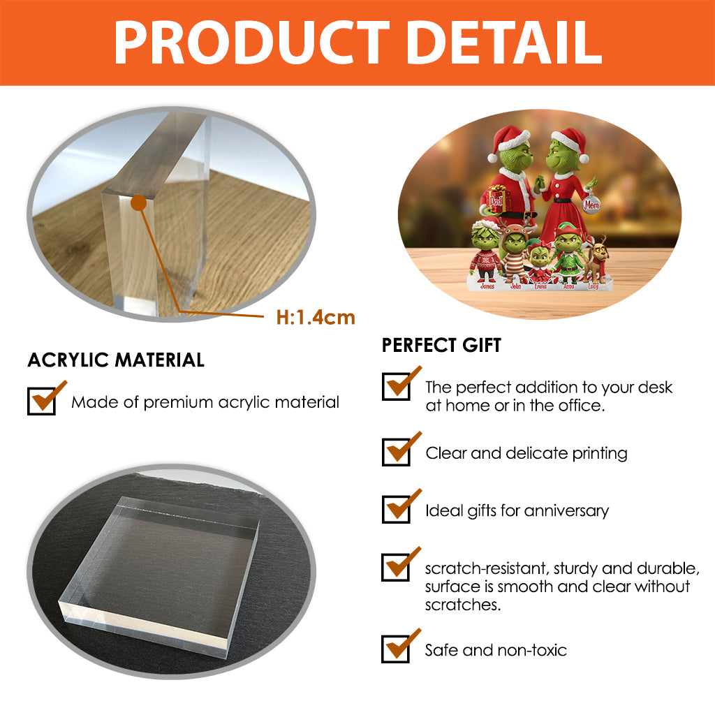 Cadeau familial Joyeux Grinchmas - Étole de Noël personnalisée sur plaque acrylique en forme personnalisée