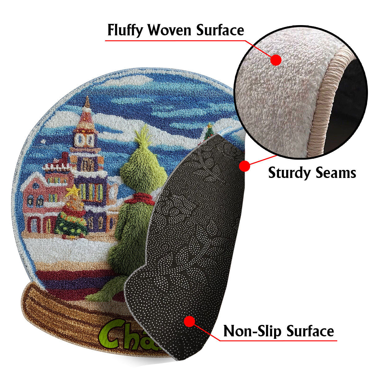 Monstre Vert avec Chien - Étole de Noël personnalisée Tapis touffeté antidérapant