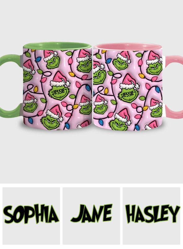 Mug décoratif de Noël vert et rose - Étole personnalisée