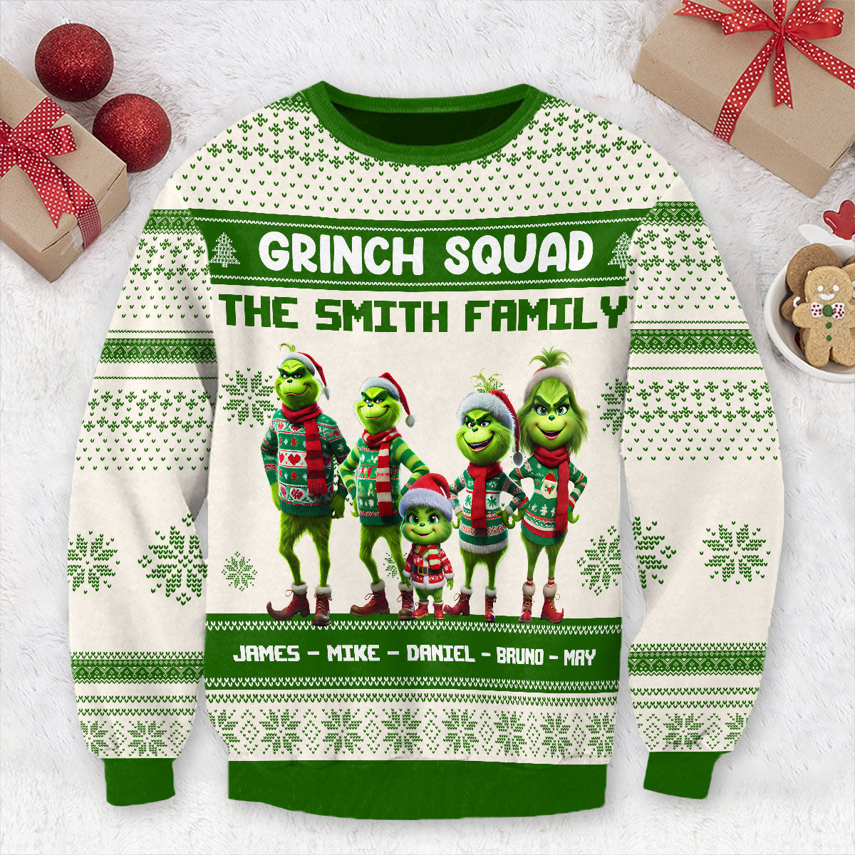 Équipe Grinch - Pull de Noël moche personnalisé avec étole