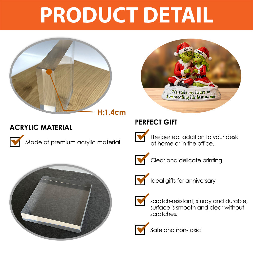 Il a volé mon cœur - Plaque acrylique personnalisée « Il a volé mon cœur » en forme de Noël