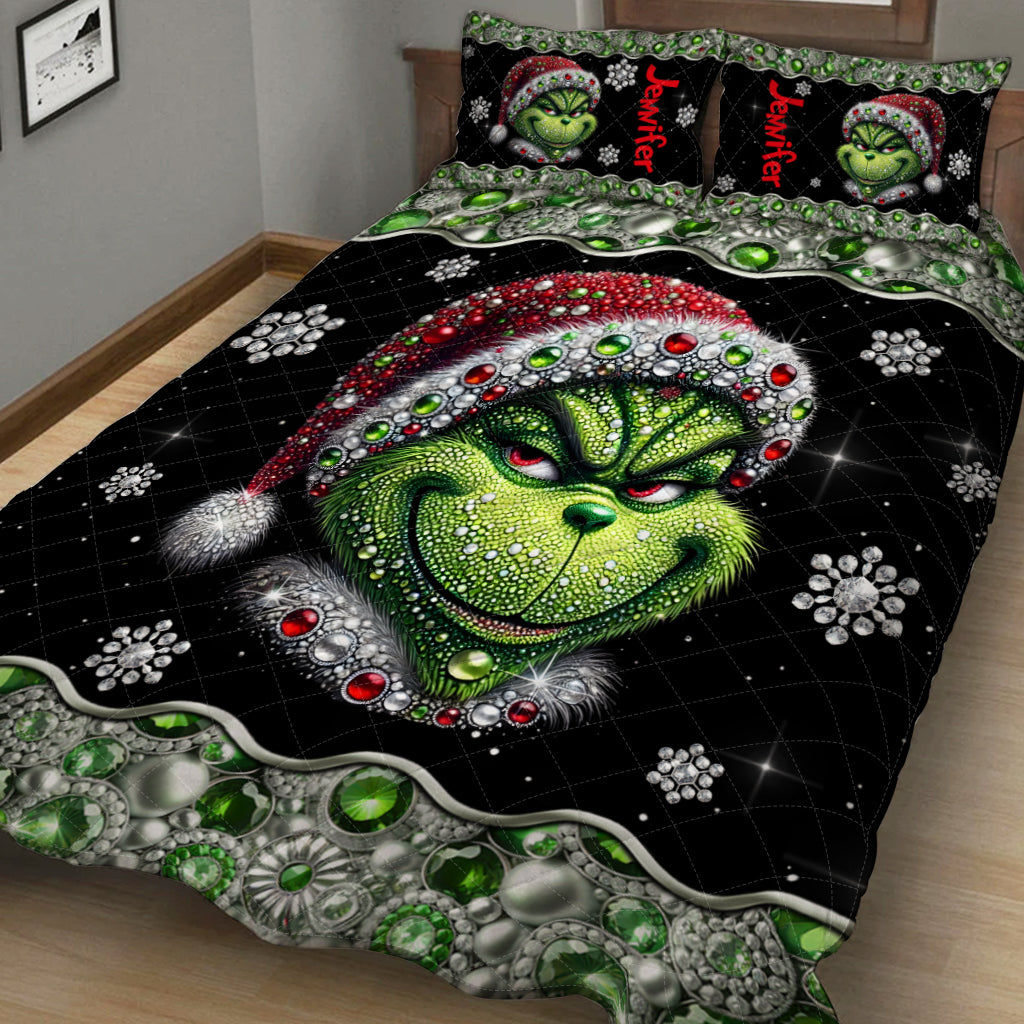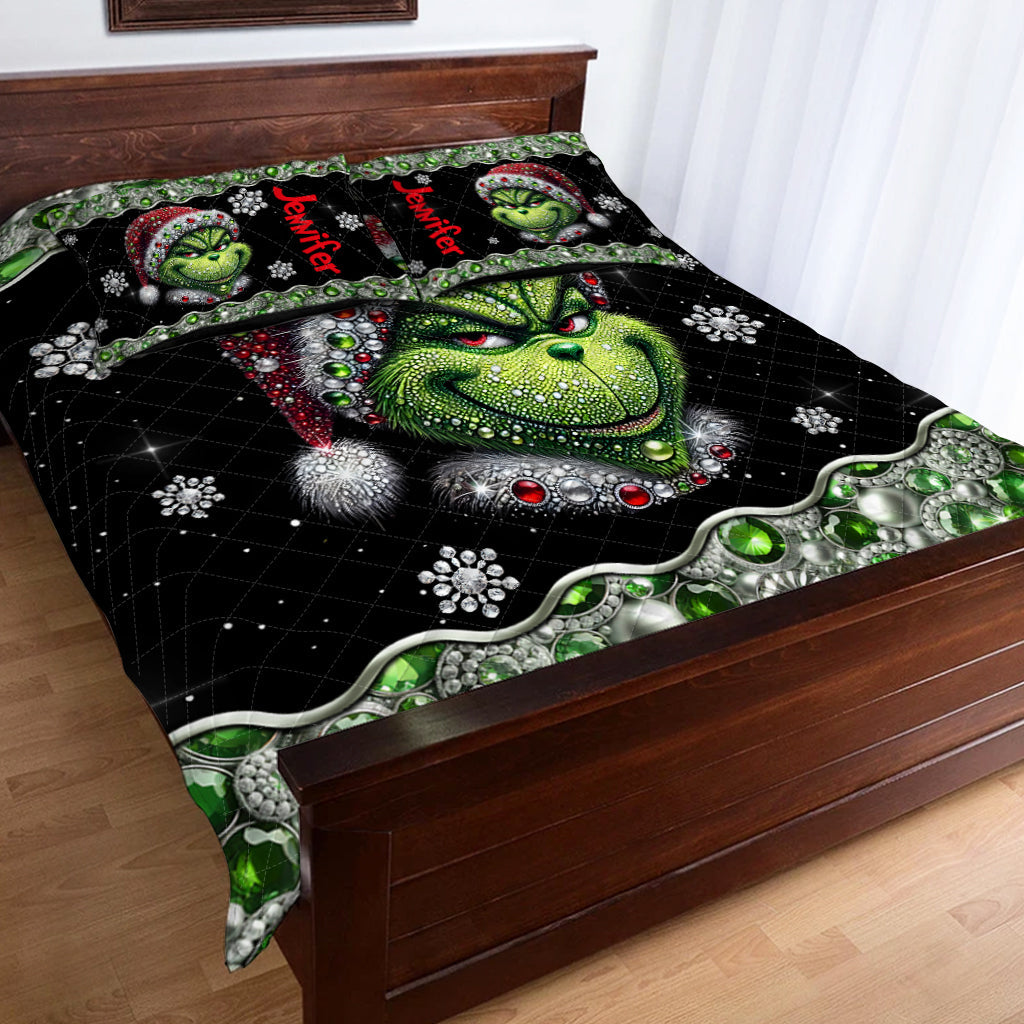 Joyeux Grinchmas - Ensemble de courtepointe de Noël avec étole personnalisée