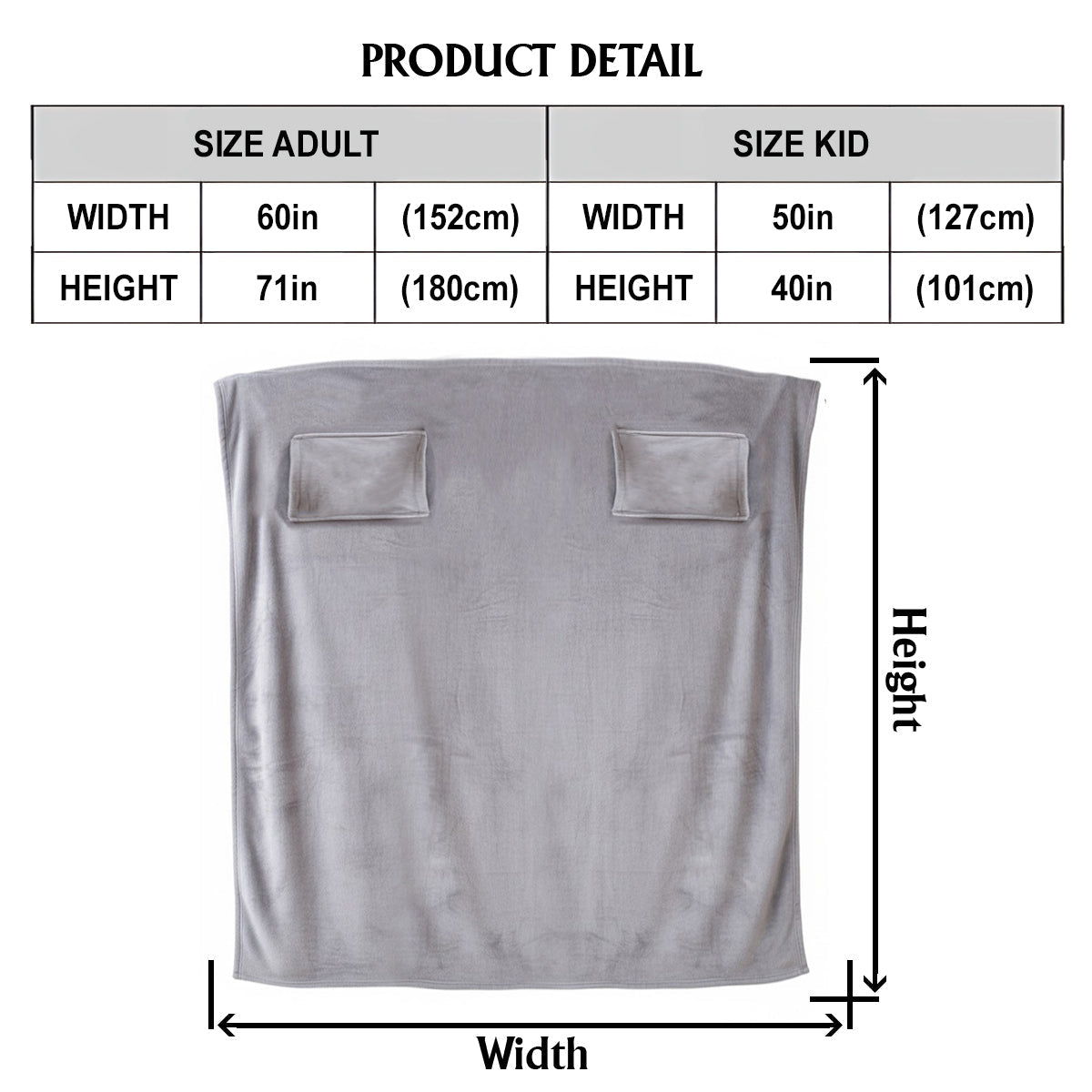 - Dimensions adultes : 70" x 60" : format surdimensionné pour se détendre sur le canapé, au lit ou en voyage.