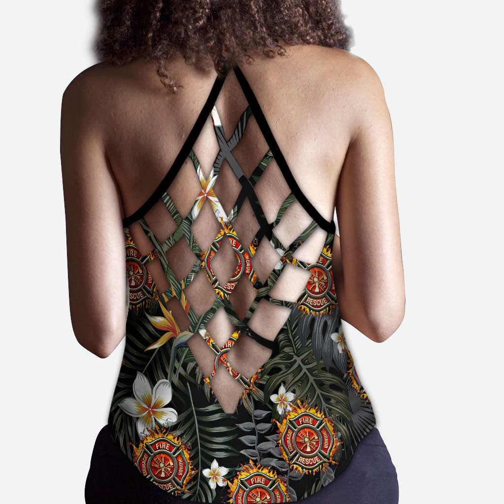 Premium Cross Tank Top: Back lattice is made of triple-layered black stretch fabric and is oversewn (so it cannot be printed)