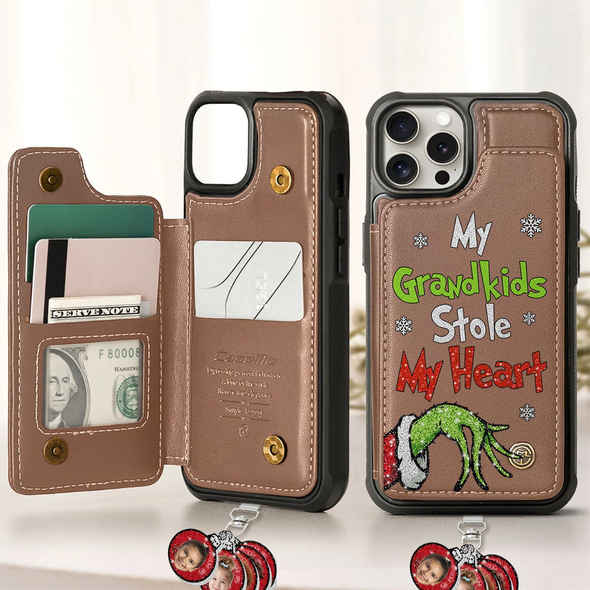 My Grandkids Kids Baby... Stole My Heart - Personalized Stole Christmas Phone Wallet With Charms